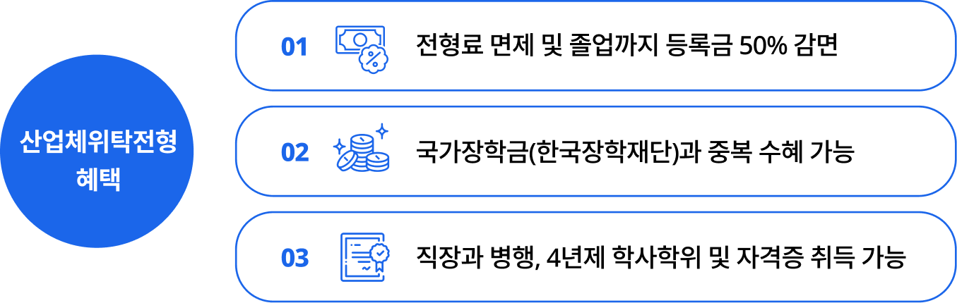 본교와 '산업체위탁교육'을 체결한 산업체ㆍ기관의 임직원 또는 중앙부처ㆍ지자체 공무원 (경찰, 소방관 포함)이 지원하는 전형